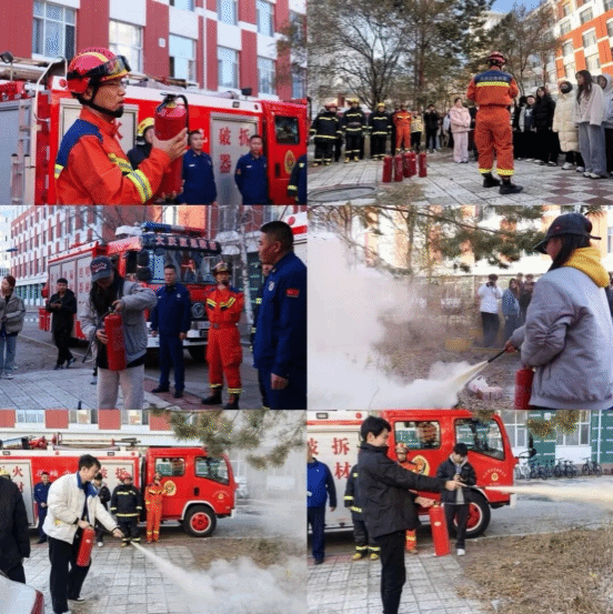 逃生应急演练结束后,消防大队工作人员为师生详细讲解了防火灭火、自救逃生以及日常防御火灾的要点和技巧,并现场讲解和演示了灭火器的正确使用方法。在工作人员的指导下,参与的学生代表亲自体验了灭火器的操作过程。