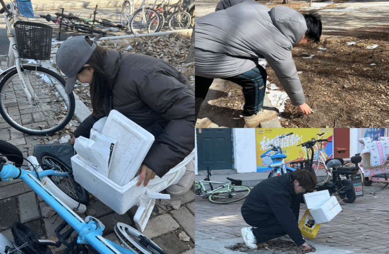 在志愿活动过程中,艺术学院志愿者们手持垃圾袋,分组在校园分担区捡拾垃圾,将路面上的包装袋、落叶都仔细清理。大家分工明确,有人负责清理、有人负责运送垃圾,在共同努力下,校园环境变得干净整洁,为同学们营造了美好的校园环境。