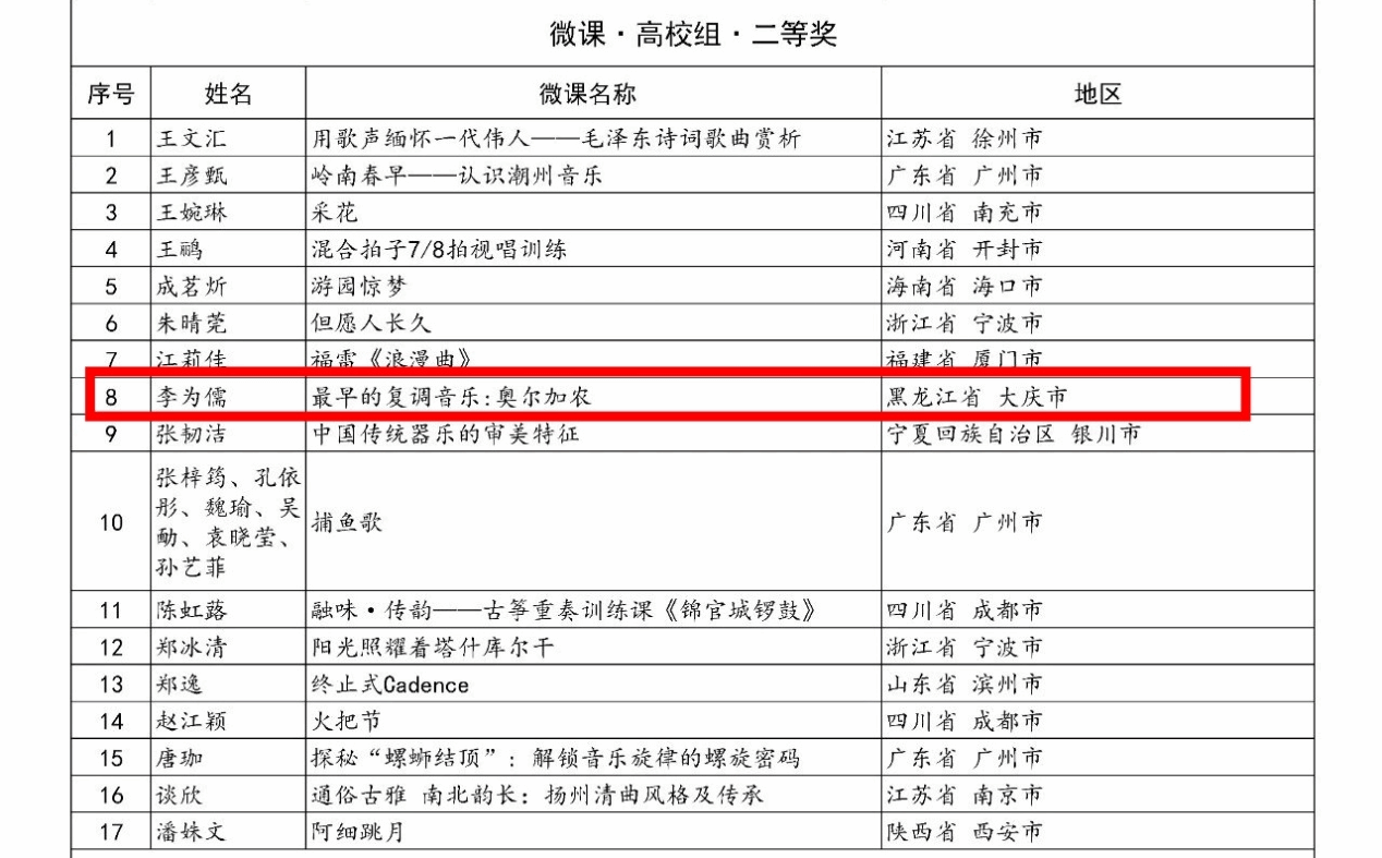 2025 “万叶杯”音乐微课与课件征集活动结果揭晓,艺术学院音乐系李为儒老师的微课作品《最早的复调音乐:奥尔加农》,凭借专业特色鲜明、设计创新、技术精湛,在众多作品中脱颖而出,荣获微课高校组二等奖,彰显我院教师在音乐教育信息化领域的实力。