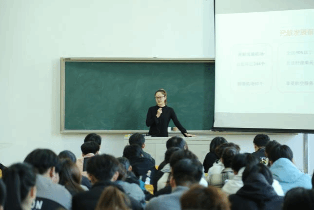 宣讲会上,“带你飞航空科技有限公司”代表通过PPT展示与现场讲解,详细介绍了公司的发展历程、业务范围及未来规划。该公司专注航空科技领域研发、服务与创新,致力于为全球客户提供先进航空解决方案,让在场学生对公司愿景与使命有了初步认识。针对艺术专业学生,代表还特别介绍了公司在航空领域、民航空乘服务的需求并展示成功案例,强调了各大航空公司对空乘服务行业的需求情况,期待艺术学院的学子加入。