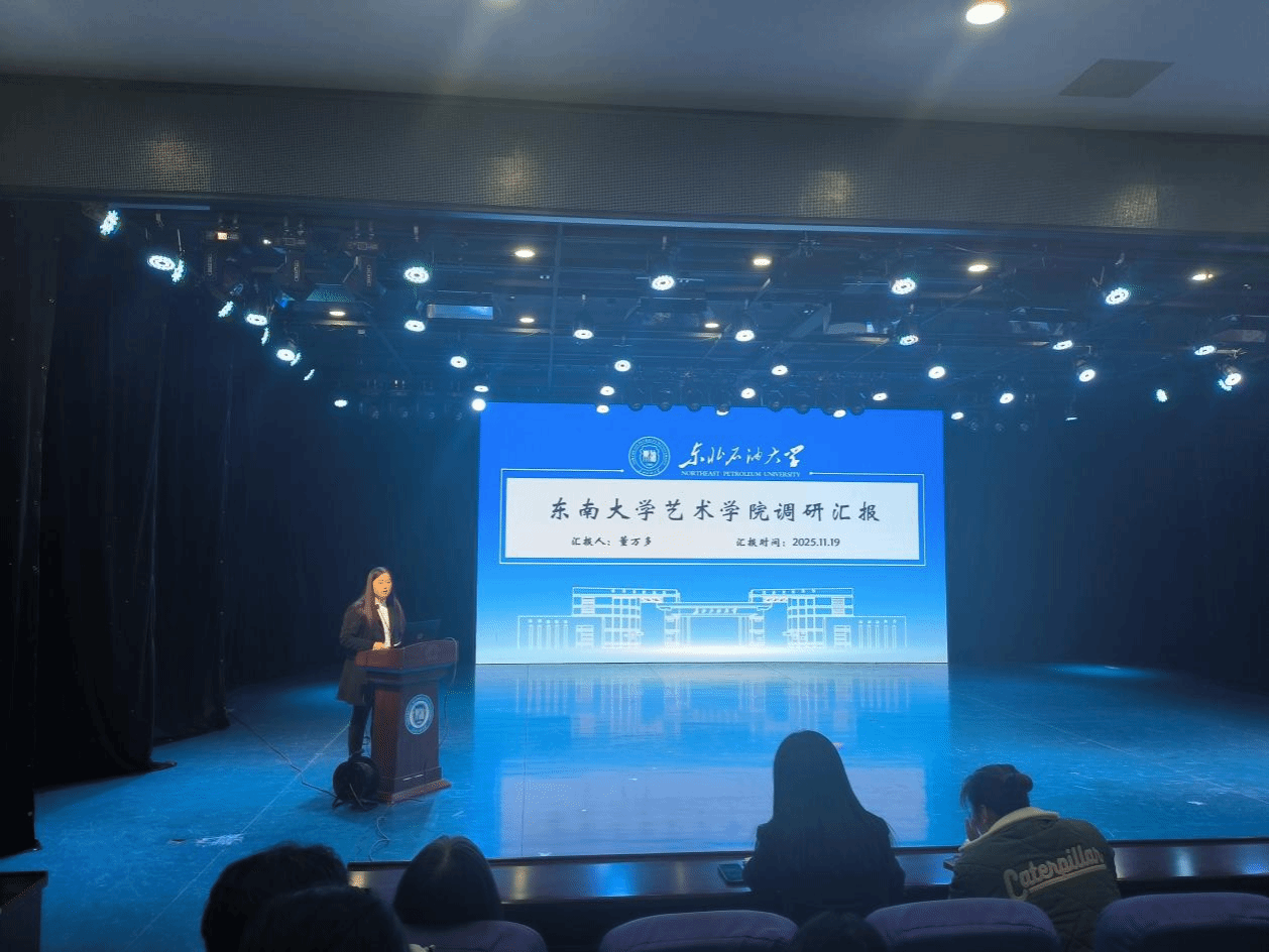 副院长董万多的汇报则围绕对东南大学艺术学院的调研展开。她系统地从调研背景、文创设计工作、关键成果、可借鉴内容以及学科建设指导等五个维度进行了阐述,为我院优化学科布局、完善人才评价机制提供了具体、详实的依据。
