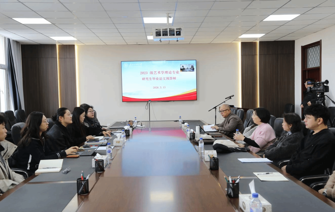 2026年3月13日8:30-19:30,我院以线上与线下结合的形式举行了2023级艺术学理论专业毕业论文预答辩。13位硕士研究生参加了学位论文预答辩。专家评委组共5人,组长由哈尔滨音乐学院博士生导师马卫星教授担任,专家组成员有山东艺术学院博士生导师田川流教授、哈尔滨音乐学院硕士生导师梁帅副教授、艺术学院院长林庆华教授,艺术学院伊善斌教授,艺术学院全体硕导及在读研究生参加会议,会议由马卫星教授主持。
