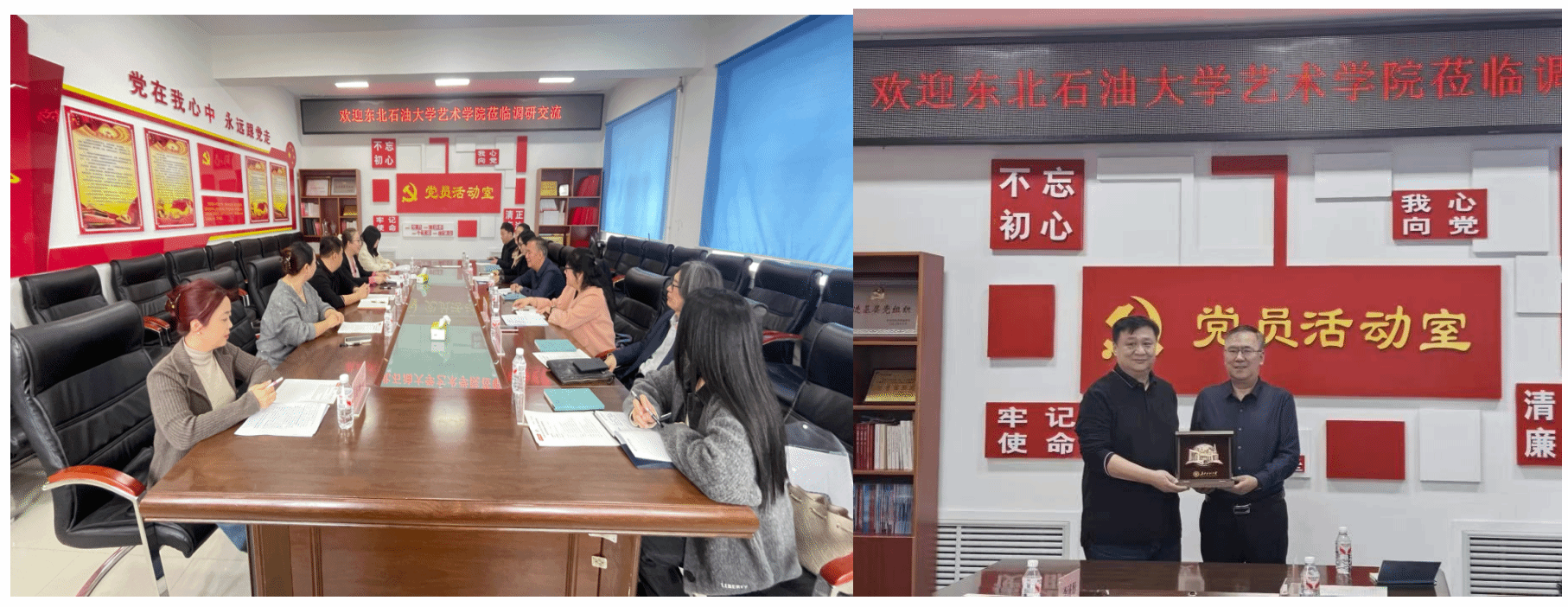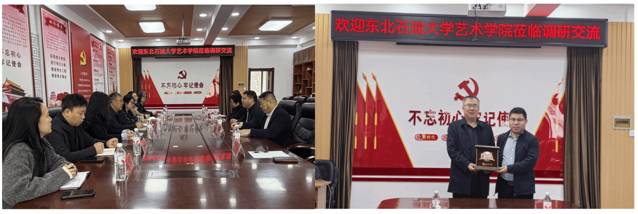 座谈结束后,张金辉书记代表艺术学院向绥化学院音乐学院与艺术设计学院分别赠送了我院原创设计的工艺品,以此增进校际情谊,共促艺术教育协同发展。